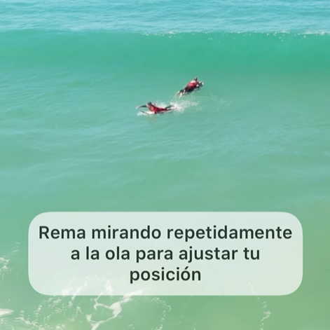 Remada: Rema la ola mirando cada segundo de nuevo hacia detrás, para ver por dónde va la ola y dónde va a romper.
